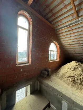Дом находится вдали от центра посёлка в тихом и уединённом месте, непосредственно на берегу реки Махорка, рядом с источником Иверской иконы Божией Матери. Площадь участка: 25 соток. Организована система дренажного водоотвода. Пробурена автономная скважина с артезианской водой; На участке: Частный жилой дом, гараж, свободное место для бани, беседки, зоны барбекю. По желанию можно отвести место под парковку или пруд. Много места для реализации идей ландшафтного дизайна; Год постройки дома: 2008; Площадь дома: 699 кв/м; Материал стен: первый и второй этаж – щелевой строительный кирпич толщиной 500мм, под плитами перекрытий полнотелый кирпич 5 рядов; цоколь – бетон; мансарда – кирпич; Крыша: металлочерепица; Состояние объекта: закрыт тепловой контур; окна стеклопакеты; заведены коммуникации (газ, электричество, вода); поддерживается постоянная температура при помощи системы отопления.