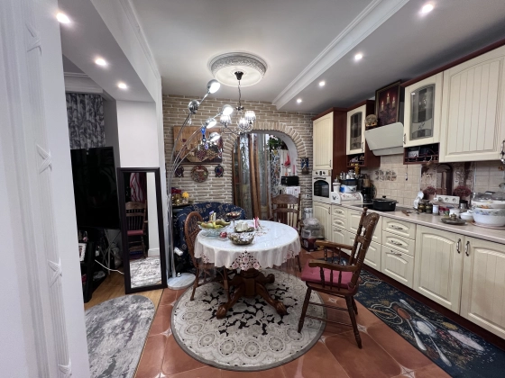 Встроенный кухонный гарнитур со встроенной техникой: духовой шкаф, варочная панель, вытяжка, шкаф-купе остаются новым хозяевам в подарок!