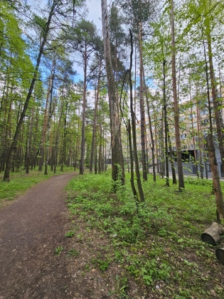 Квартира – студия находится на 2 этаже 6 этажного дома в окружении лесного массива.